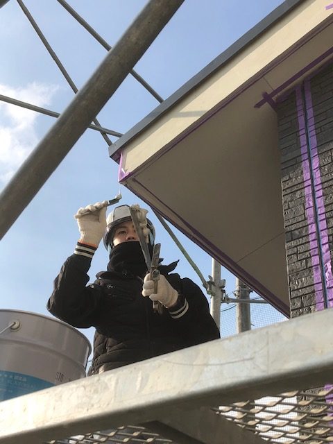 雨樋の中など、綺麗に掃除してから作業スタートです・・・