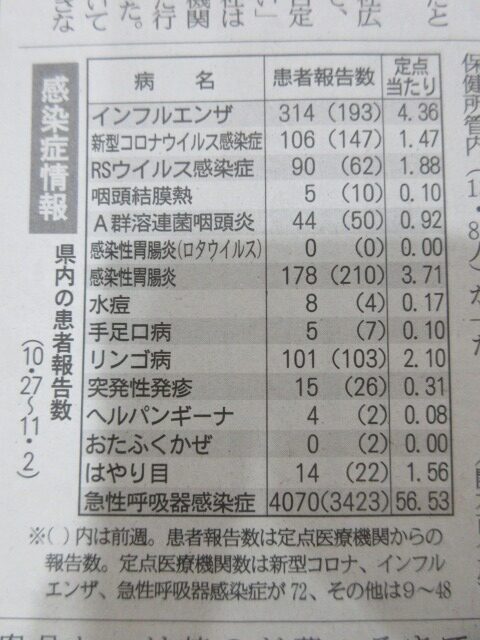昨日までの「インフルエンザ」「コロナ感染者」・・・