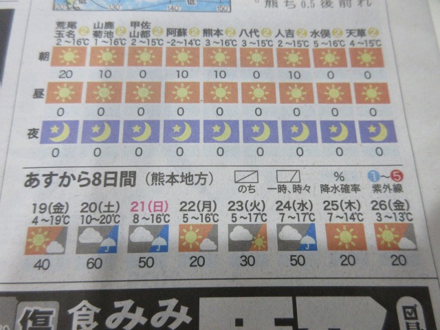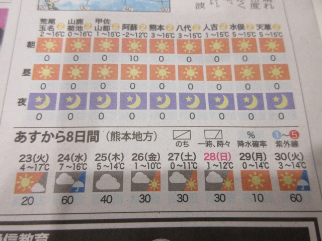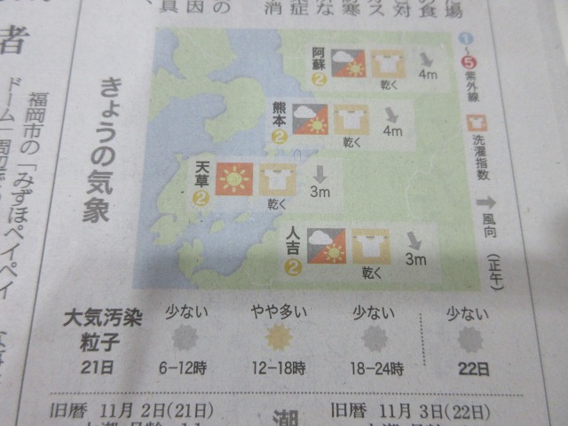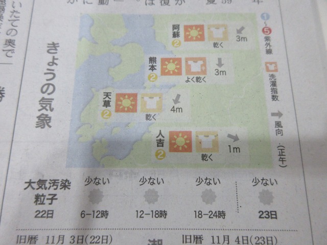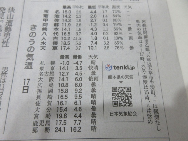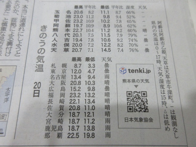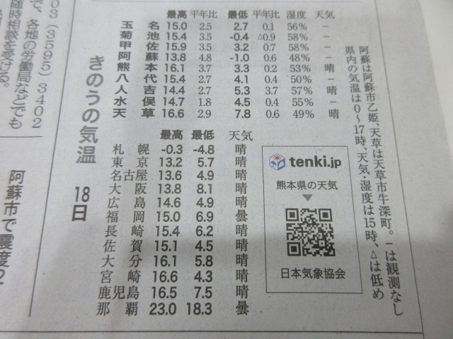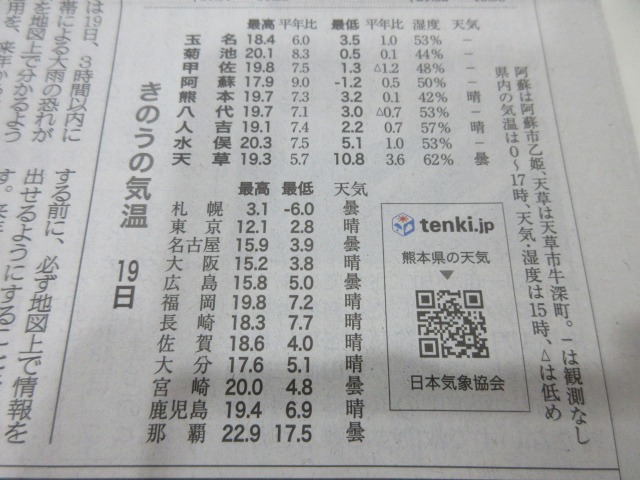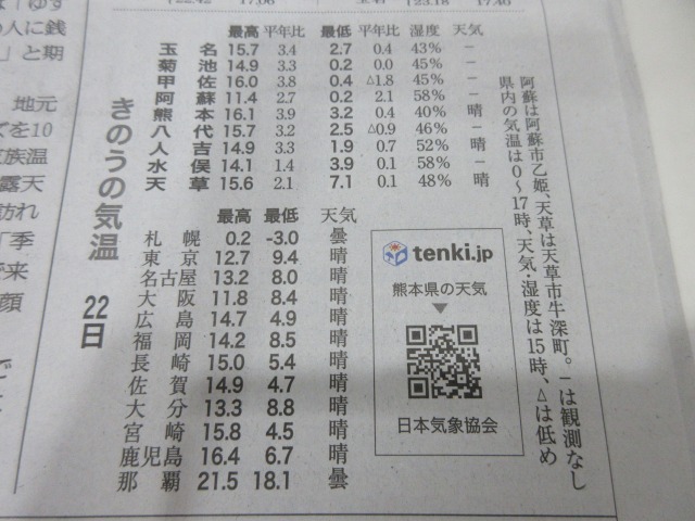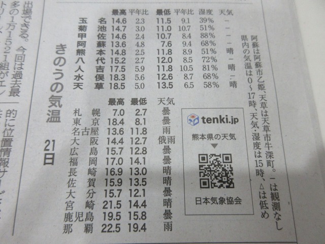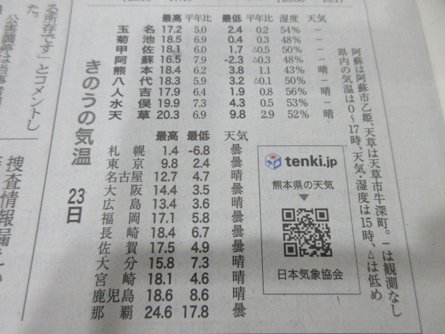 熊日新聞が休刊日の為、また明日お伝え致します。