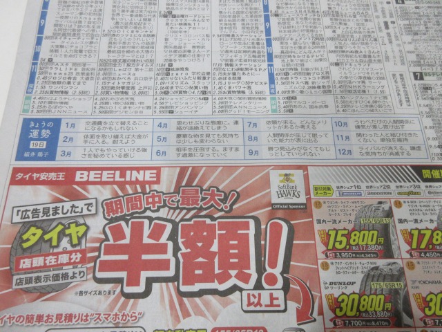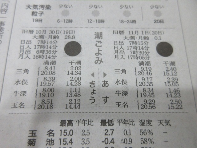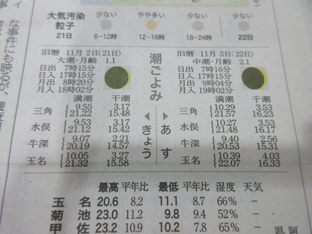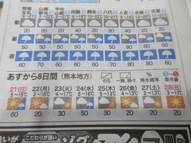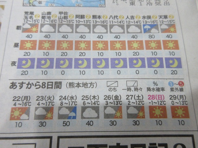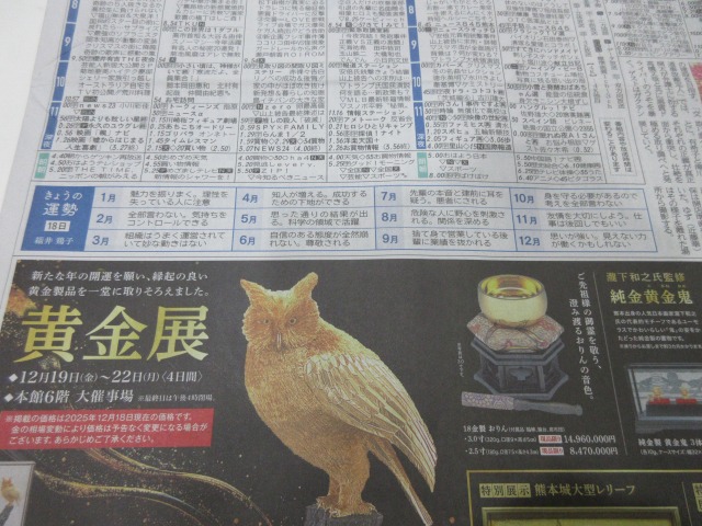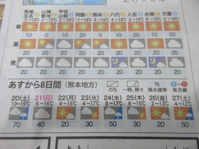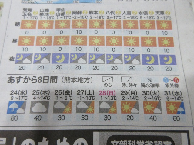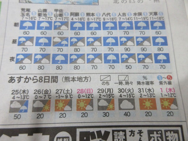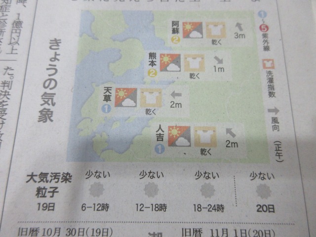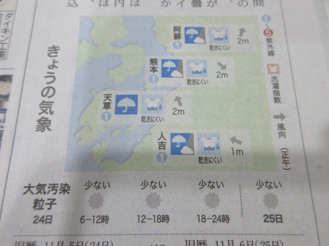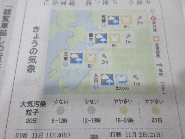 熊日新聞が休刊日の為、また明日お伝え致します。