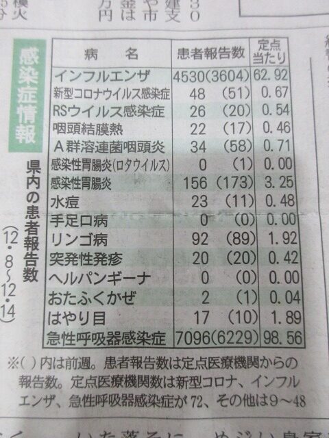 昨日までの「インフルエンザ」「コロナ感染者」・・・