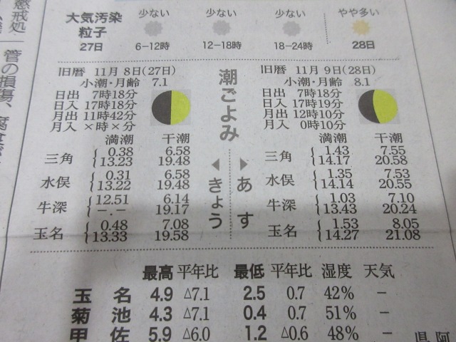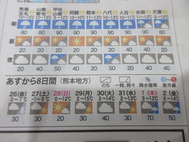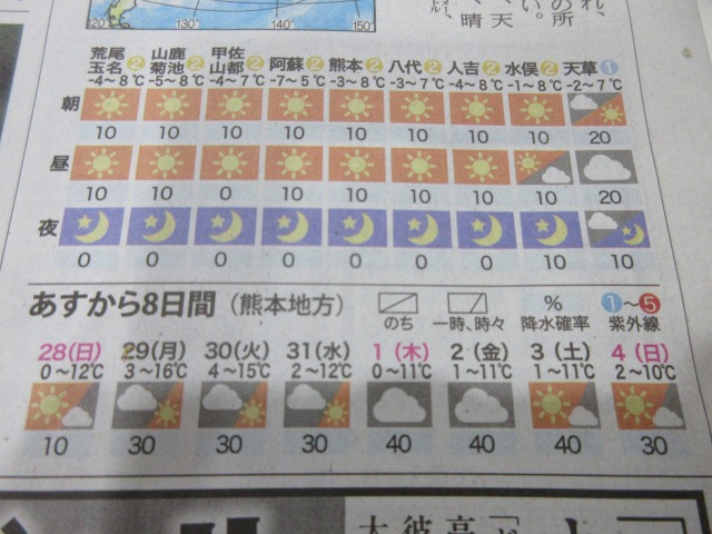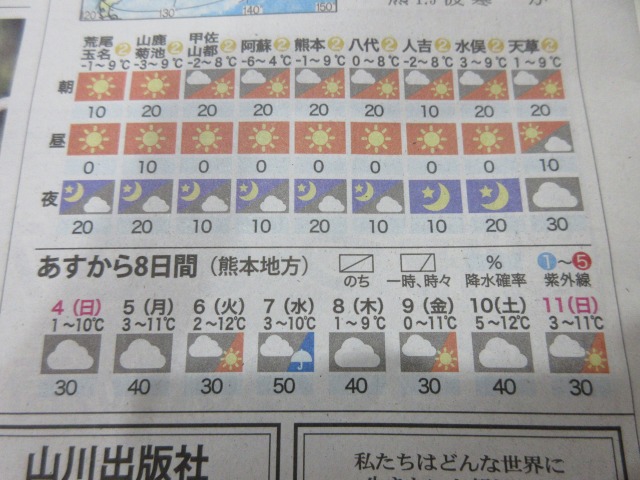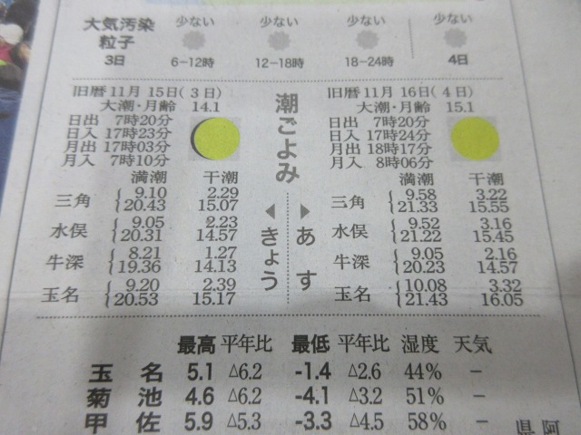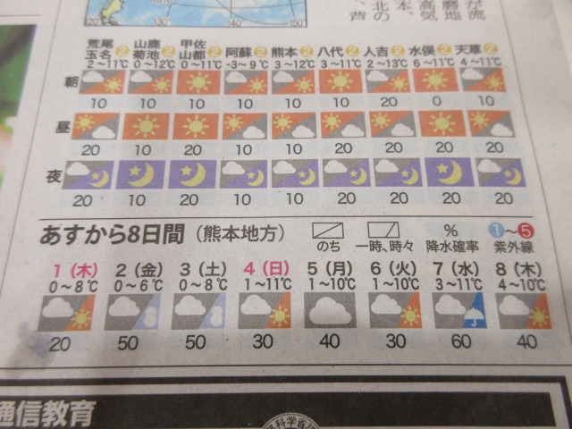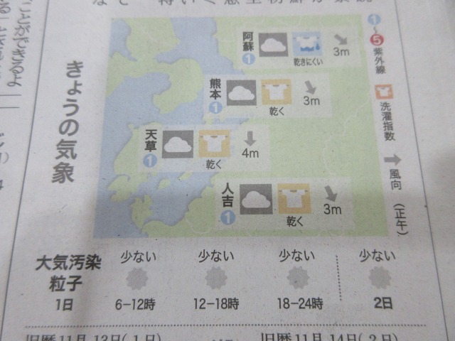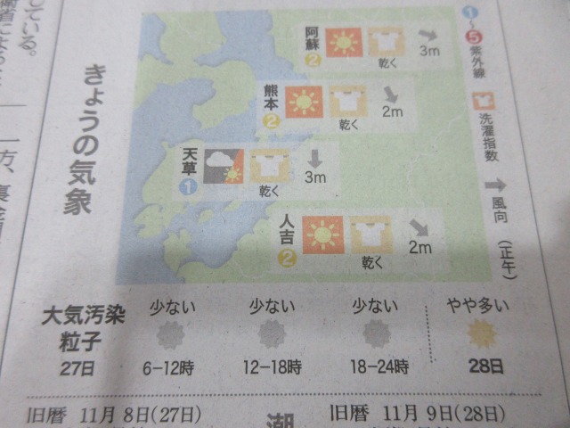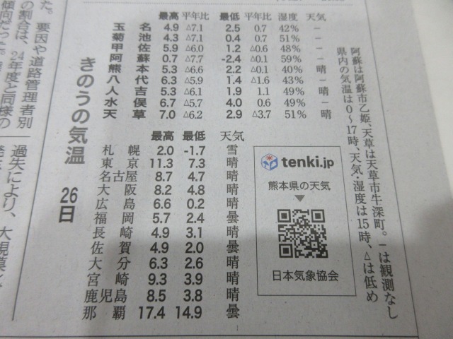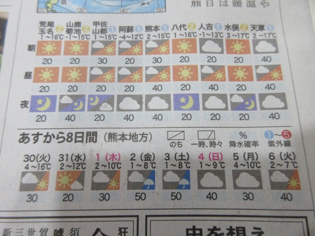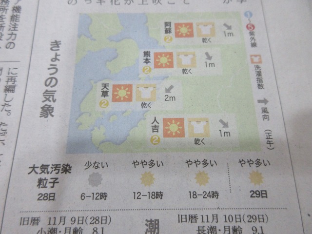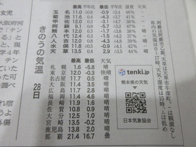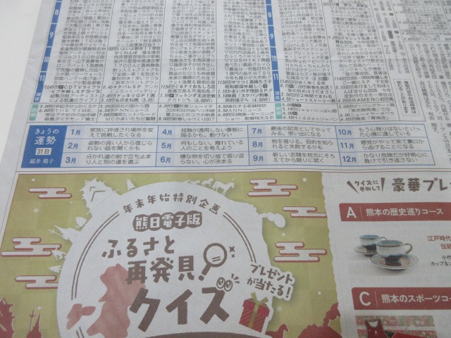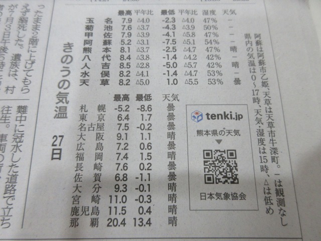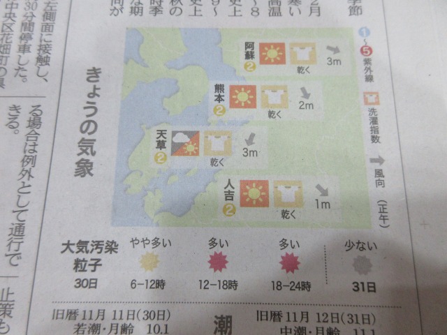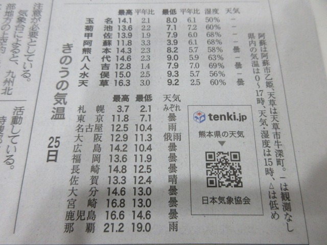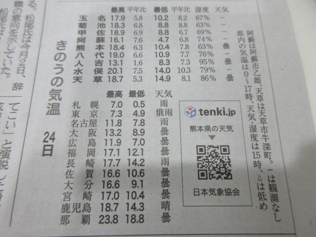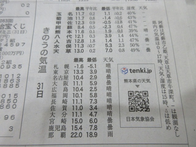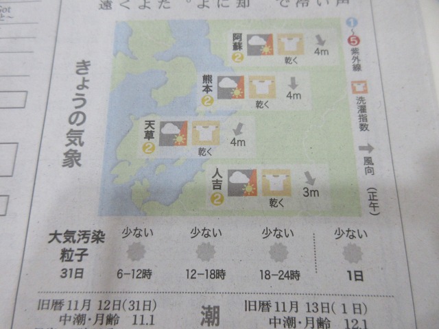 熊日新聞が休刊日の為、また明日お伝え致します。