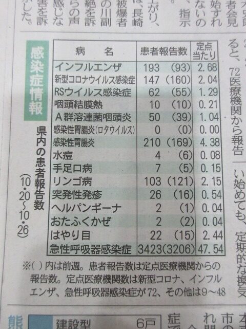 昨日までの「インフルエンザ」「コロナ感染者」・・・