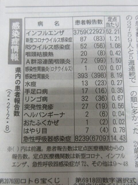 昨日までの「インフルエンザ」「コロナ感染者」・・・