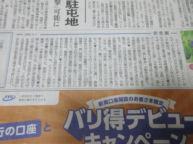 今日の「新生面」・・・