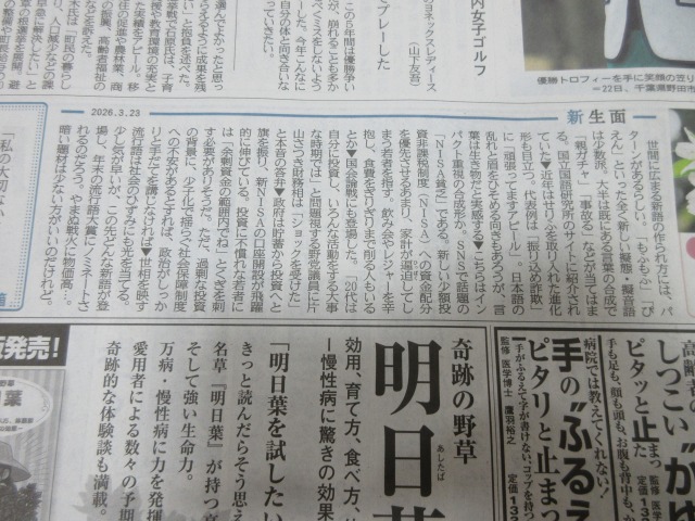 今日の「新生面」・・・