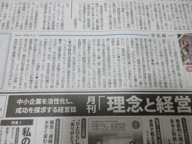 今日の「新生面」・・・