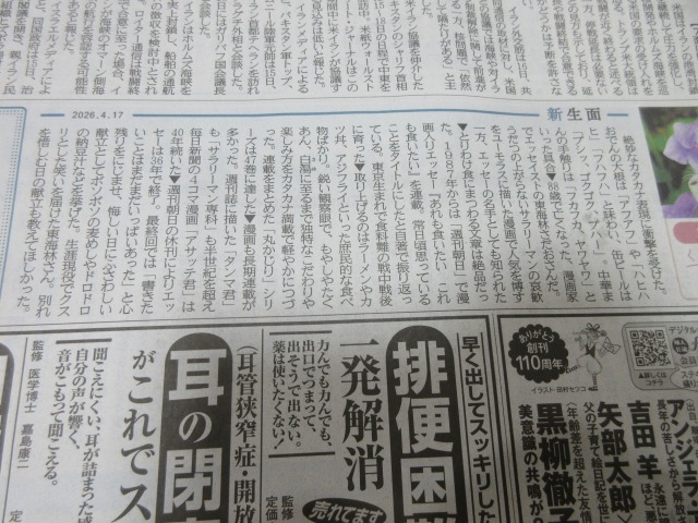 今日の「新生面」・・・