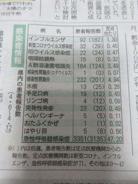 昨日までの「インフルエンザ」「コロナ感染者」・・・