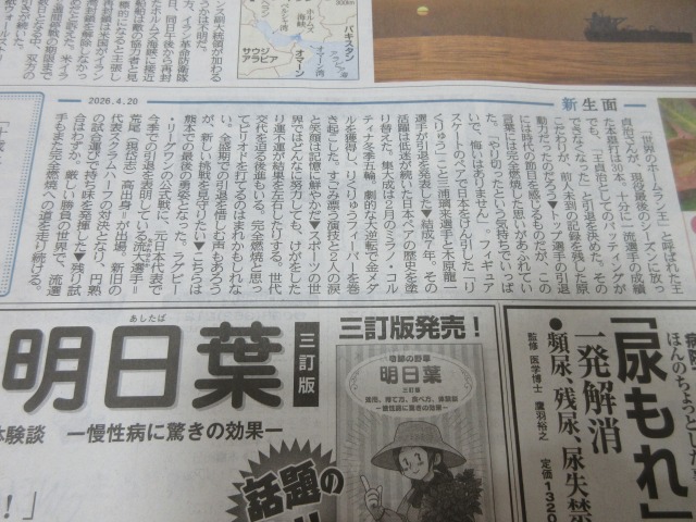 今日の「新生面」・・・