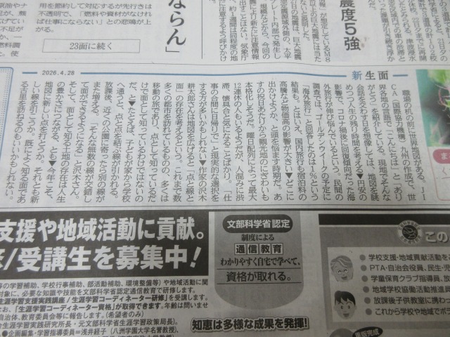 熊日新聞を、購読しましょう!