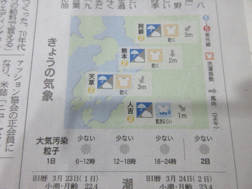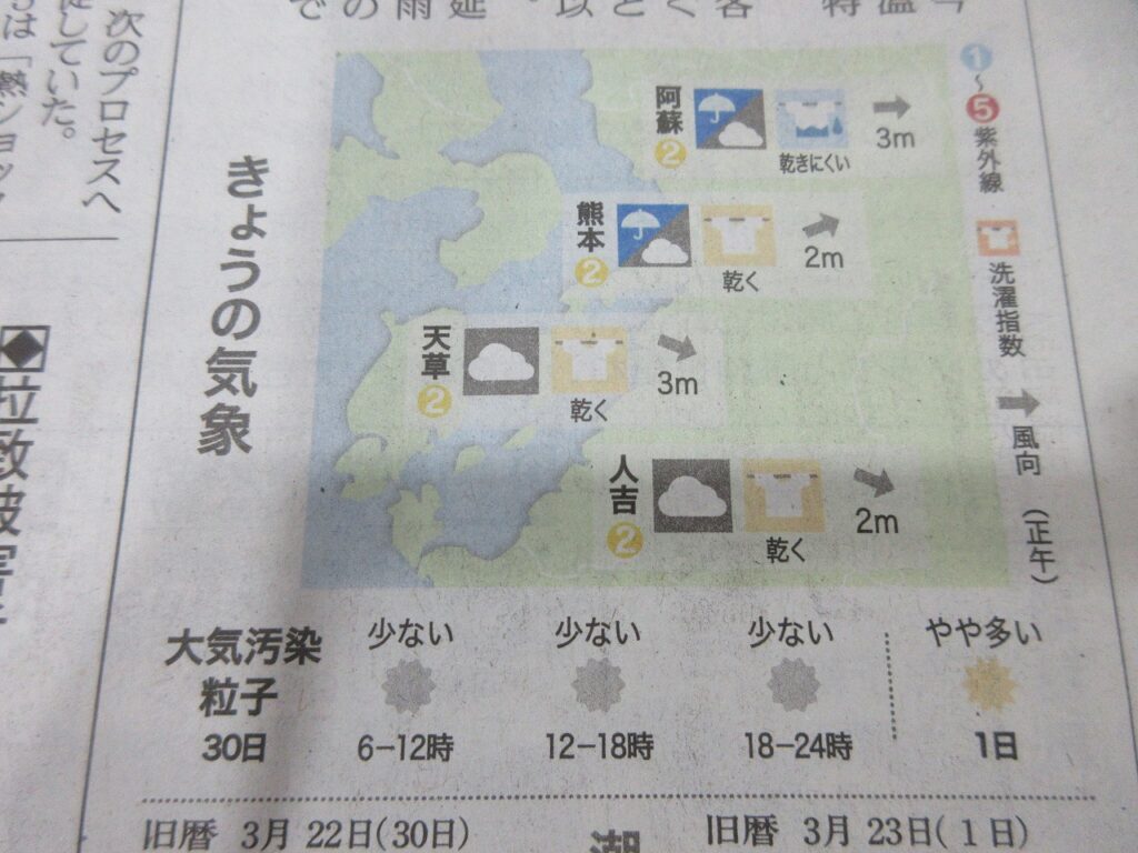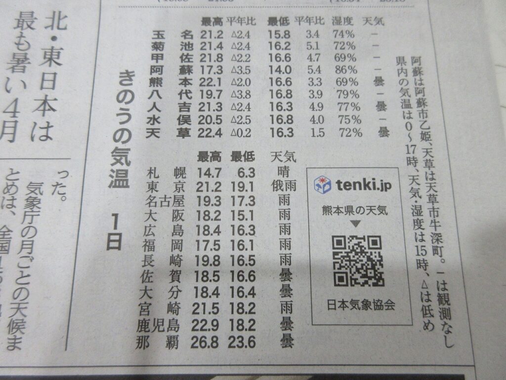 熊日新聞が休刊日の為、明日またお伝え致します。