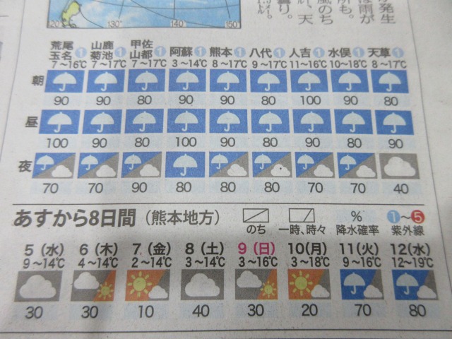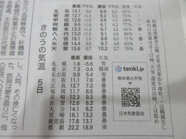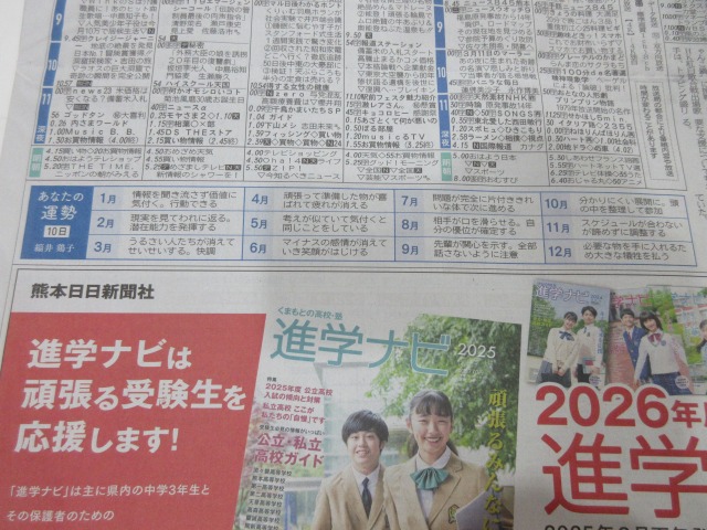 熊日新聞が休刊日の為、また明日お伝え致します。