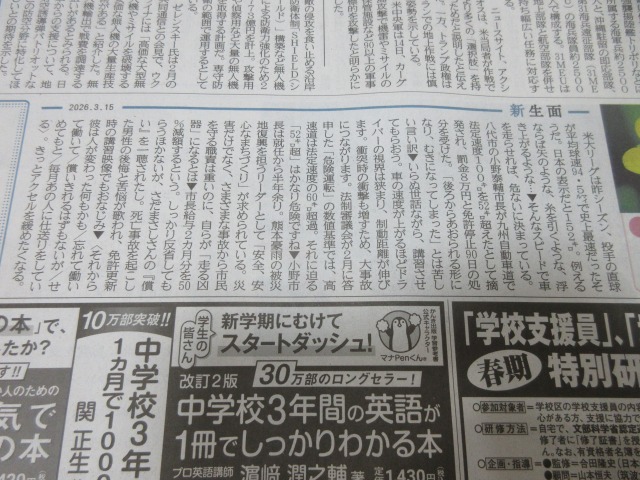 今日の「新生面」・・・