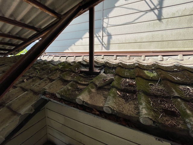 鉄骨の柱が屋根をつっぽいで雨漏れを起こしていました。