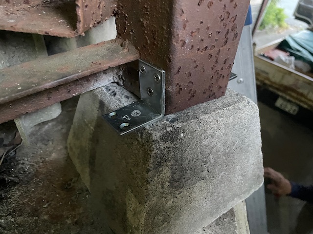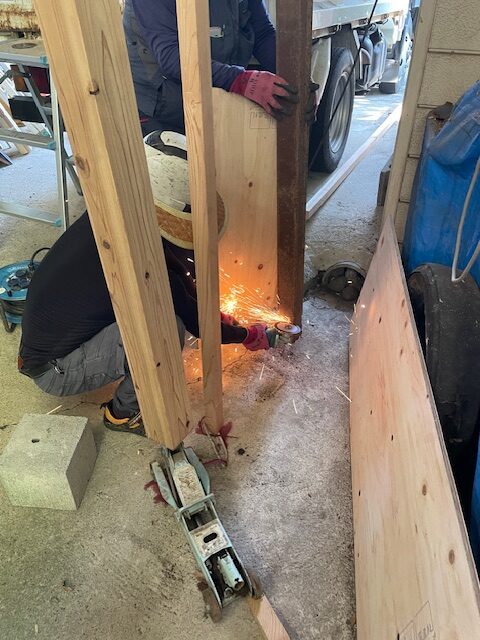 そして、鉄骨の柱に加え木製の柱も抱き合わせて補強!!