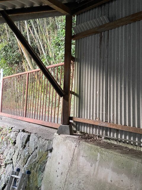 それから、鉄骨の柱の錆びた部分をカットしていきます。