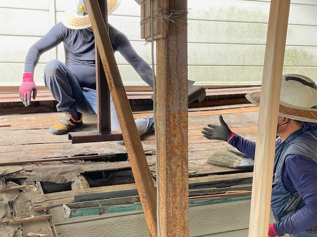 雨漏れ補修工事熊本市北区の家。鉄骨柱をジャッキアップ!?
