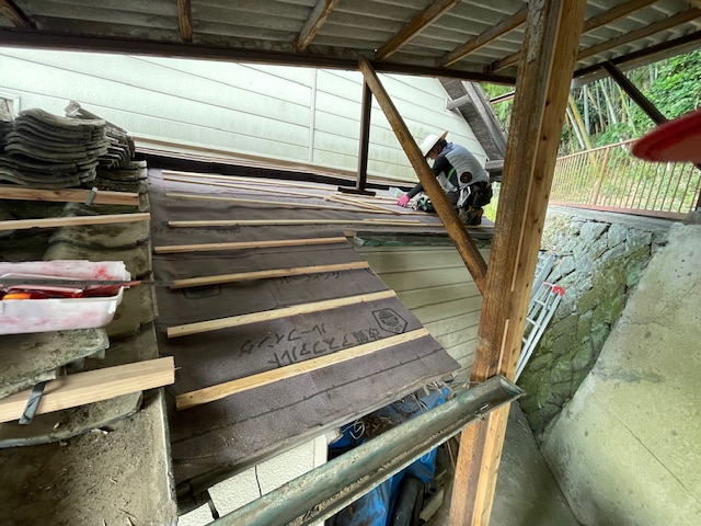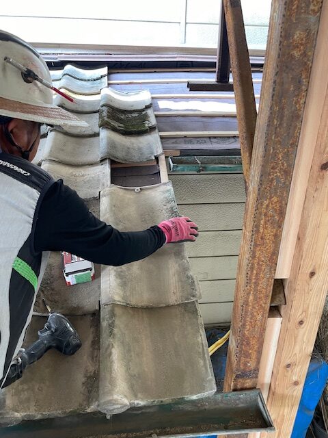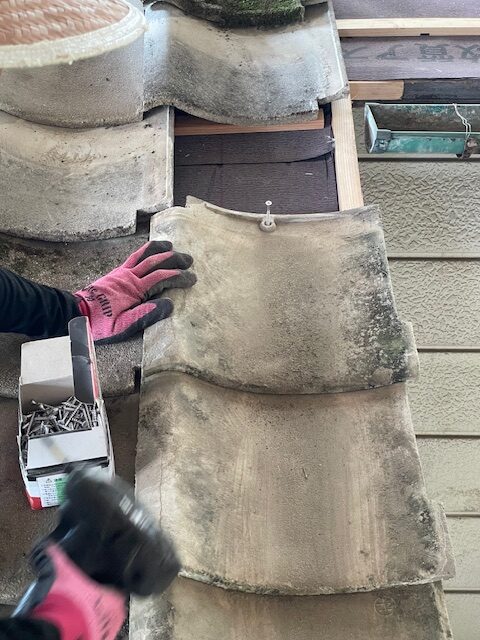 雨漏れ補修工事の熊本市北区の家では、屋根瓦の