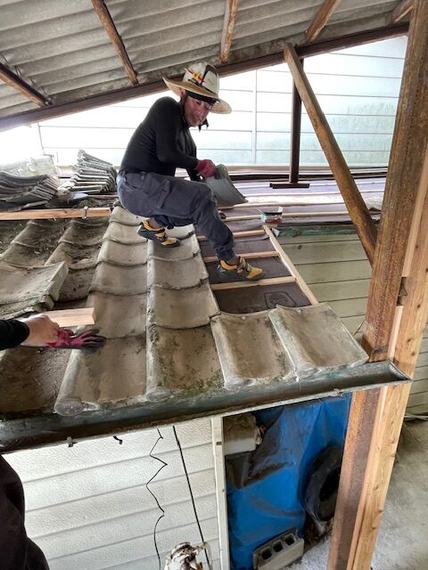 次回は新しい瓦を葺き、鉄骨の柱に工夫を加えます。