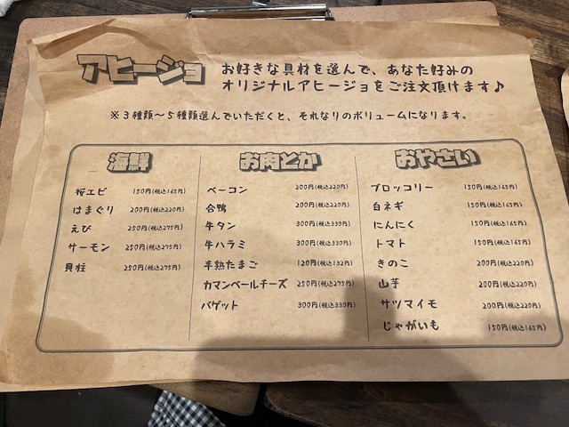 このお店、アヒージョをオリジナルで頼めるらしい・・・
