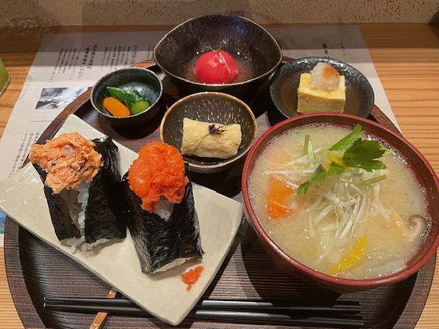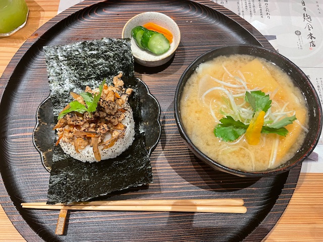 私がお願いしたのは、おにぎりとだご汁のセット!!