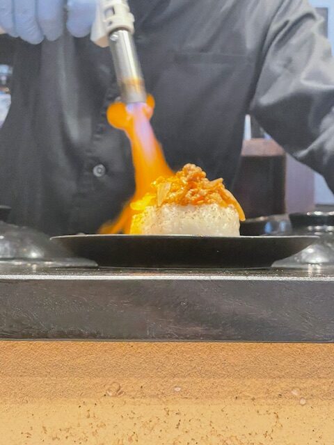 おにぎりをバーナーであぶって、提供してくれます・・・
