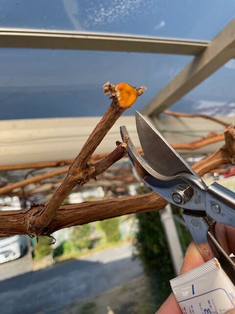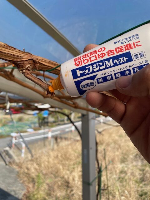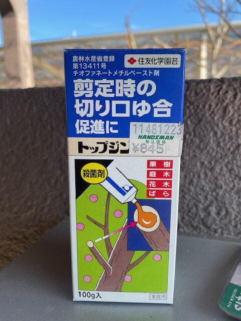 切った枝には、「トップジン」と言う殺菌剤を塗り