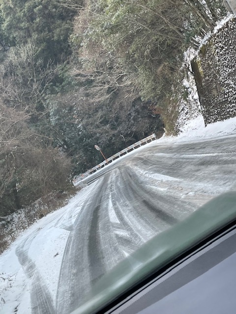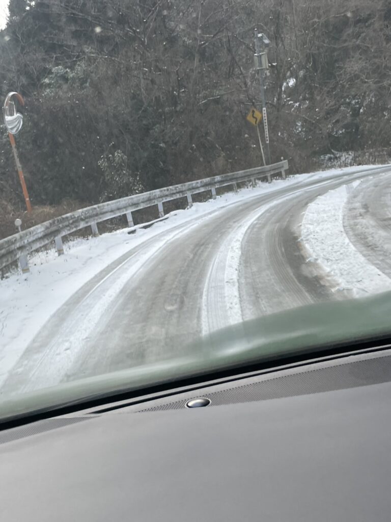 山越えのルートは、道路がアイスバーンの上り坂・・・