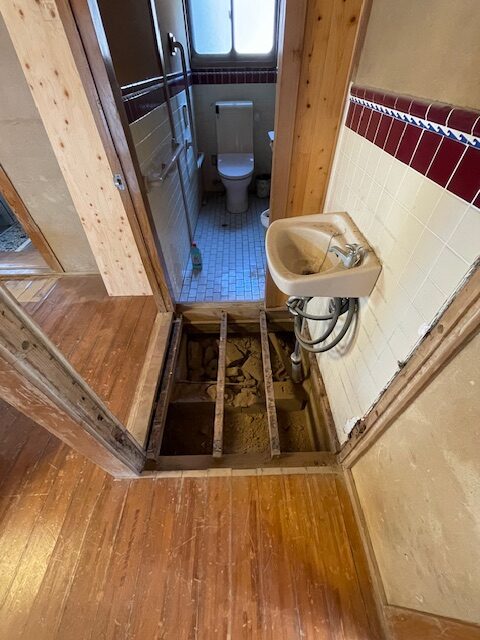 そしてこちらでは、トイレの出入り口ドア部分の補強工事を行います。