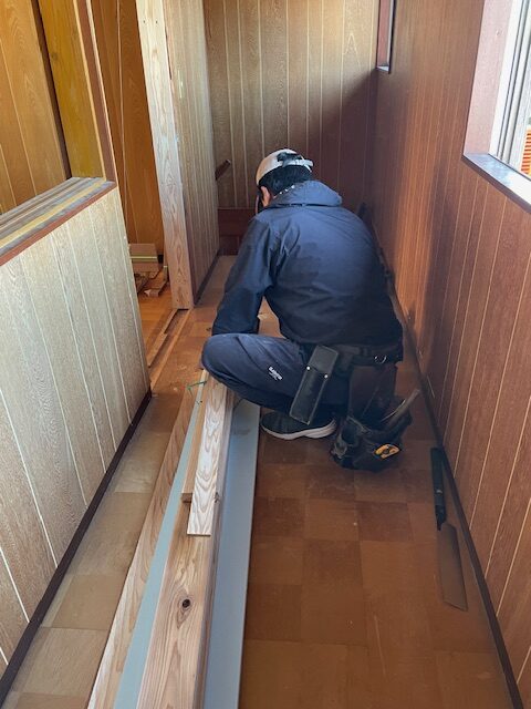 そして、新しく出入口を取り付ける為の補強工事・・・