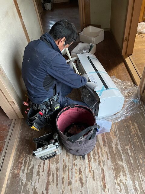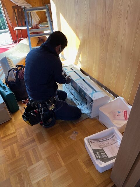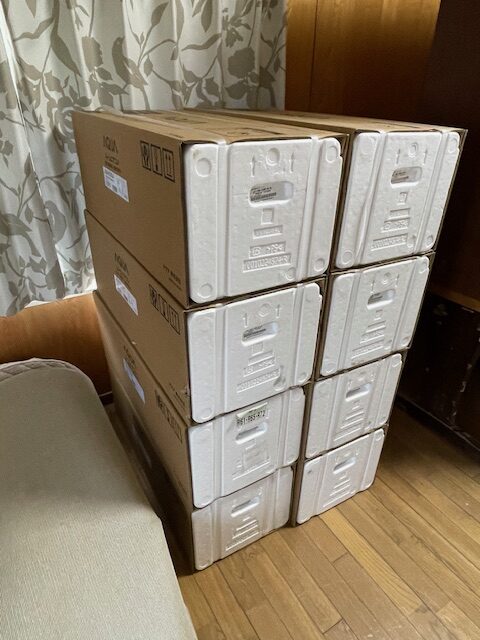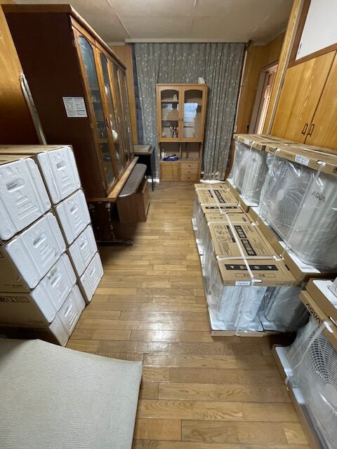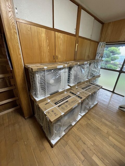 部屋数が多いので、沢山のエアコンが搬入されました。