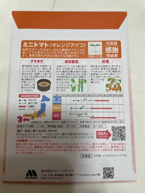 モスバーガーの日に頂いた「ミニトマトの種」撒いてみました。