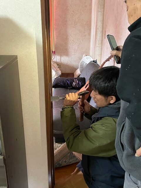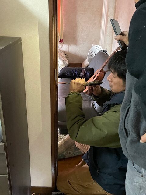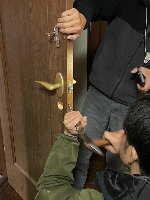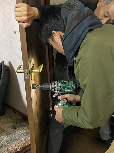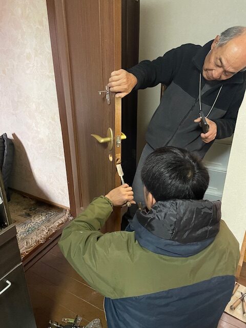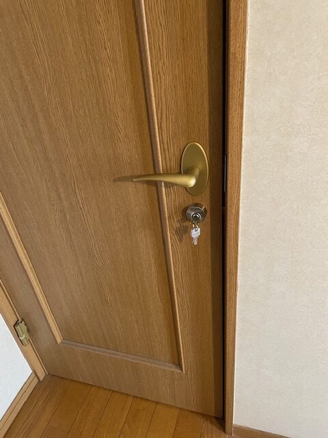 既存の建具を利用して、部屋の鍵を取り付ける工事が行われました。