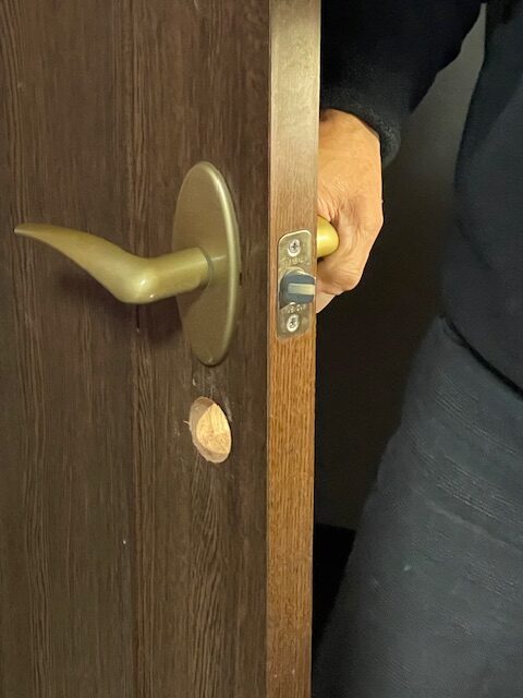 新たにドアノブの下に鍵の「シリンダー錠」を取り付けます。