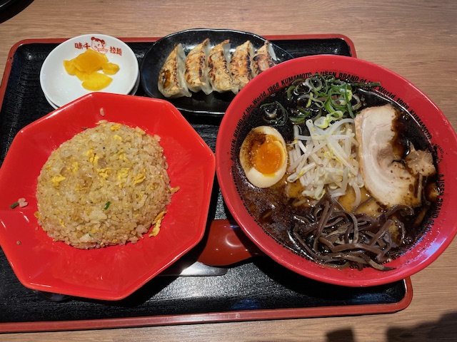 そして一緒にお邪魔した業者さんは、黒マー油ラーメンと半炒飯セット。