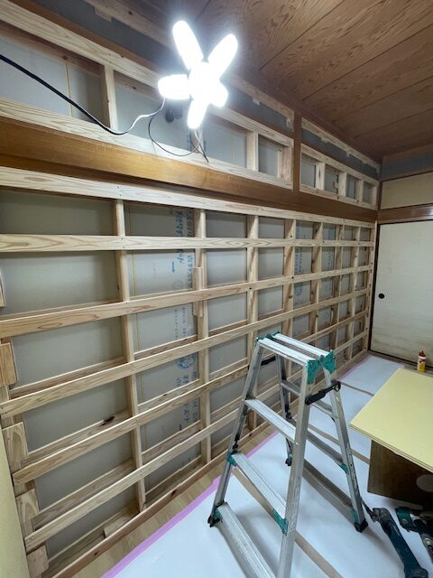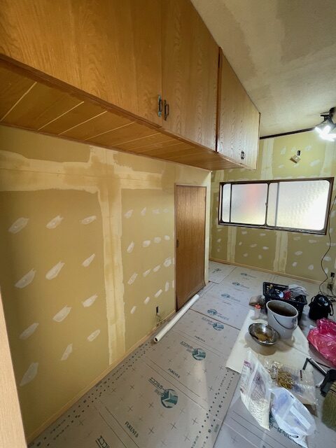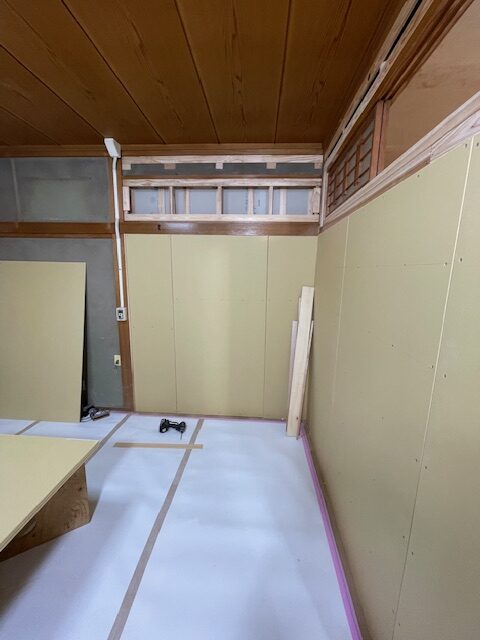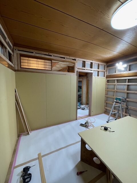 洋室リフォーム工事の玉名市天水町の家。内装工事開始・・・