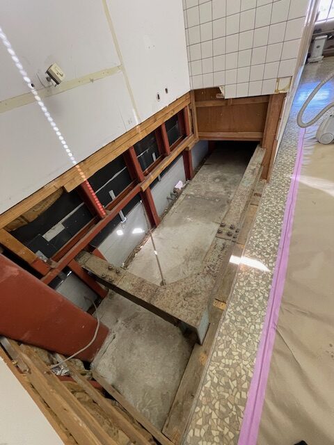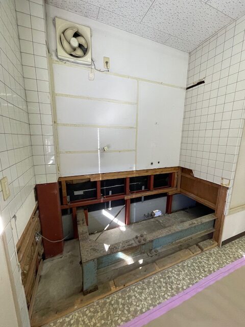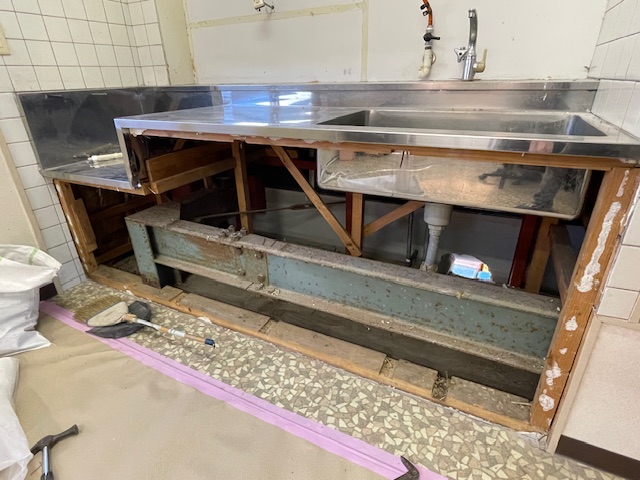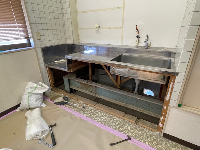 新しくトイレを作る為、既存のキッチンを解体していきます。