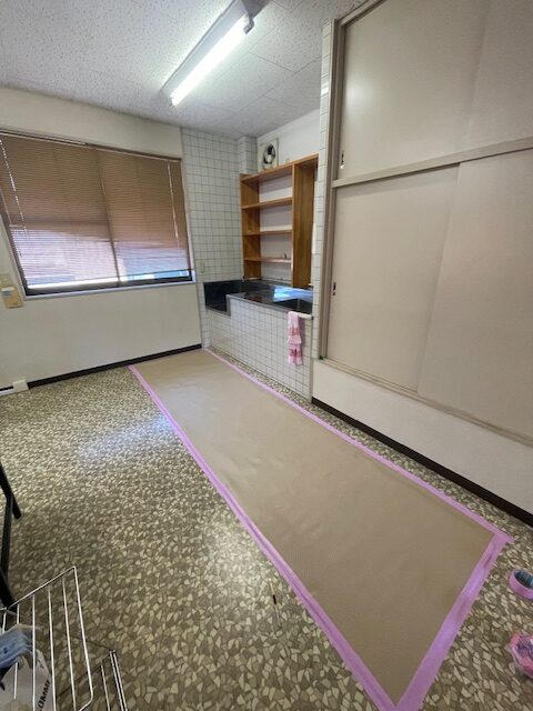 先ずは、養生作業からスタート・・・