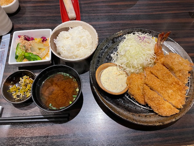 ヒレカツとエビフライ定食でした・・・