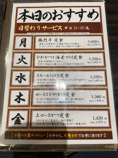今回は、とんかつの勝烈亭さんです・・・