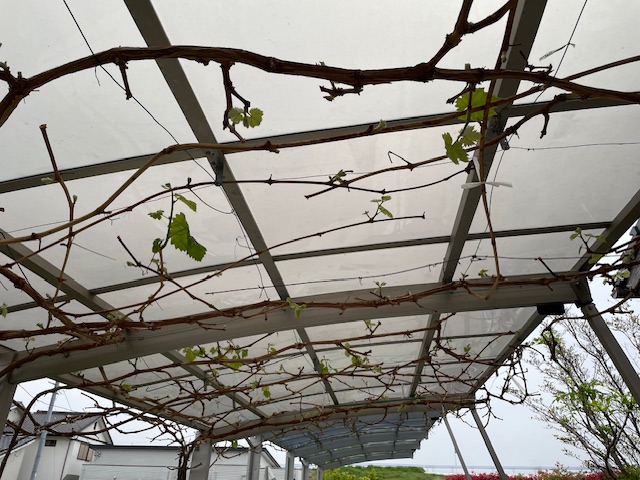 少しずつ膨らみ始める、葡萄の新芽・・・
