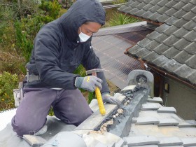 瓦が離れない様に「銅線」で繋ぎ合わせ
