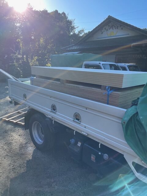 和室・LDKリフォーム工事の菊池郡大津町の家。材料搬入・・・