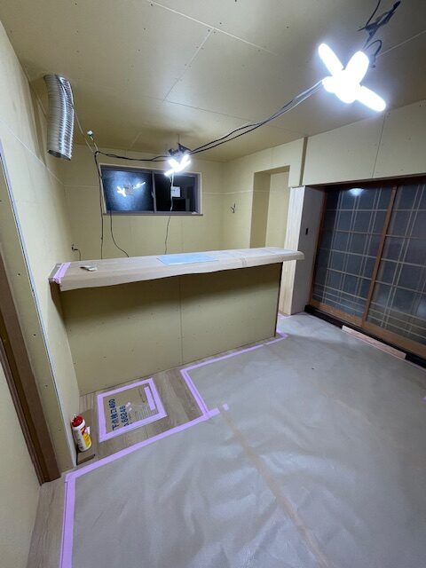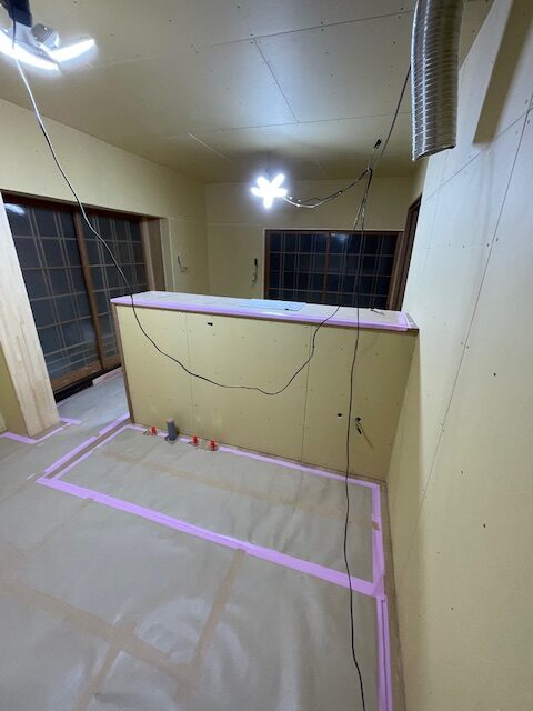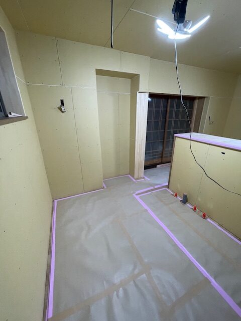 LDKリフォーム工事。壁ボード下地工事・・・