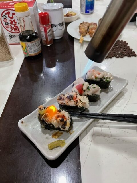 白子の寿司に、炙りサーモン、マグロに、ホタテ貝・・・