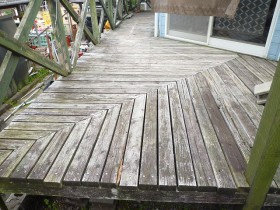 今回は、新築時に取付けられていた「木造」のウッドデッキが