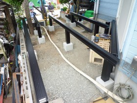 先程と同じ要領で、基礎から束石、束柱建てに・・