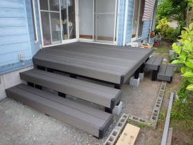 | リフォーム費用 | 既存木製ウッドデッキ解体撤去処分 ¥79000円 ベンチステップ付ウッドデッキ4.5帖 ¥392000円 簡易ステップ付ウッドデッキ4.5帖 ¥360000円 パーテーション手摺フェンス取付 ¥135000円 テラス屋根取付 D1200×W2700 ¥124000円 合計 消費税込 ¥1090000円 |