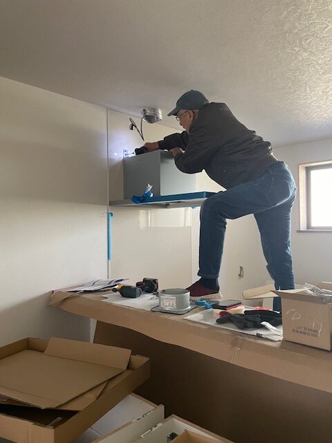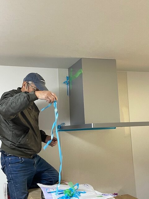 キッチンも、設備屋さんと電気屋さんが接続してくれ完成!!